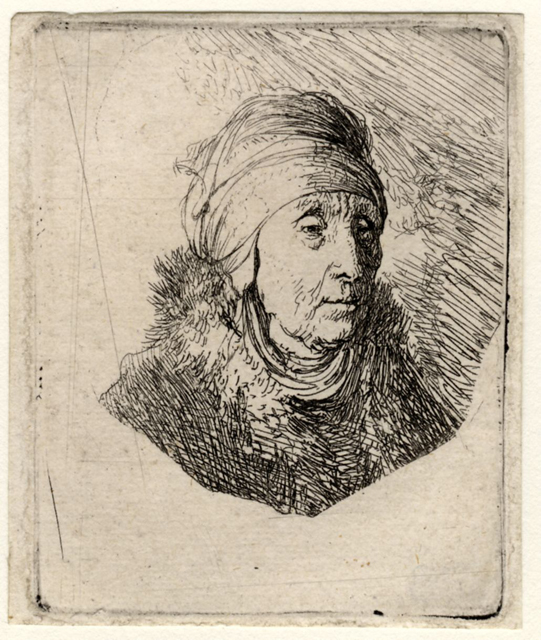 attributed to Rembrandt van Rijn (1606 - 1669): Woman with a high hairdress around chin: Bust