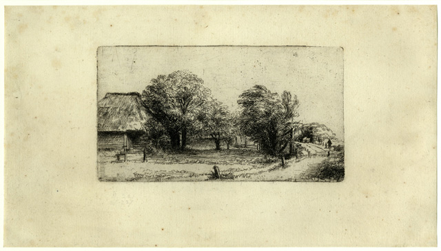 pupil of Rembrandt van Rijn (1606 - 1669): Orchard with barn